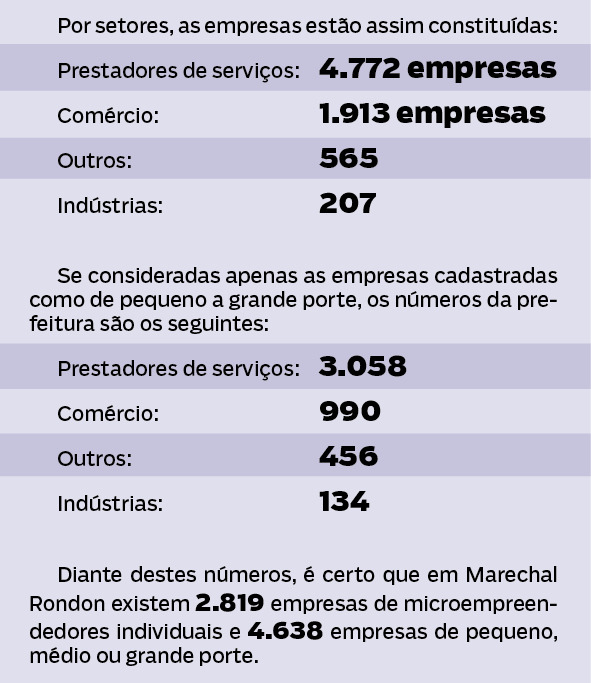 Em termos gerais, envolvendo todos os setores da economia rondonense, até abril de 2023 houve registro de 76 novas empresas em Marechal Rondon, sendo que oito atuam pela internet. No ano de 2022, foram registradas 225 novas empresas em Marechal Rondon.