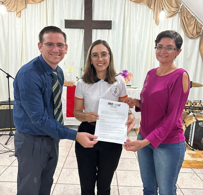 Assinaram o termo de parceria, a presidente da Aacop, Raidiane Nolasco Fernandes e a presidente da Comunidade Isaila Schug, com a presença do pastor titular local, sr. Marcos Langer, que expôs sua satisfação e emoção em celebrar tal parceria, tão significativa para toda a comunidade evangélica.