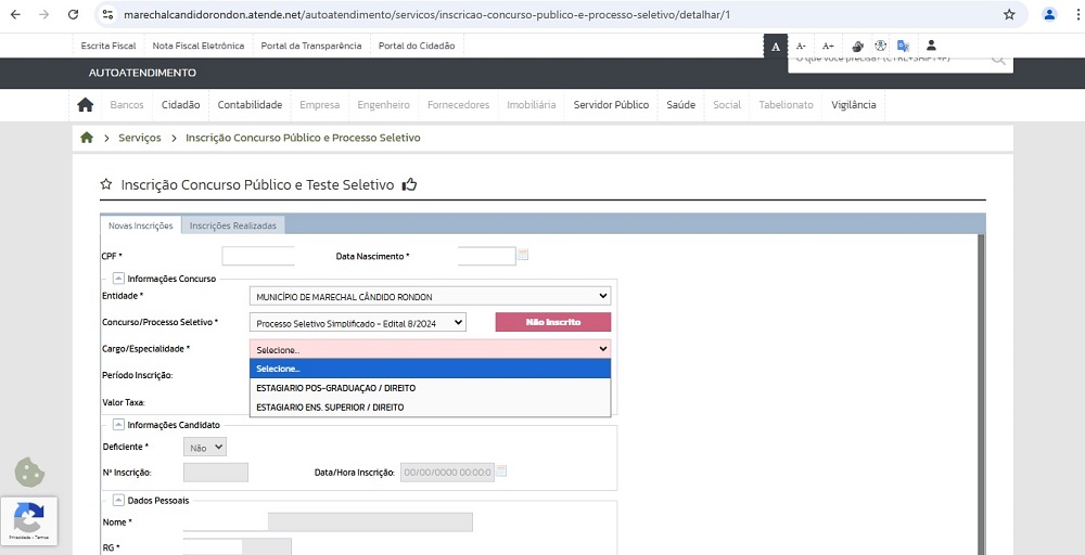Todas as inscrições são gratuitas e devem ser feitas unicamente por meio do endereço https://marechalcandidorondon.atende.net/…/inscricao…, até o dia 08 de novembro.
