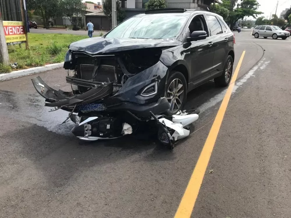 A colisão envolveu um Ford Edge e uma motocicleta Honda Biz, cujo condutor resultou com ferimentos graves.