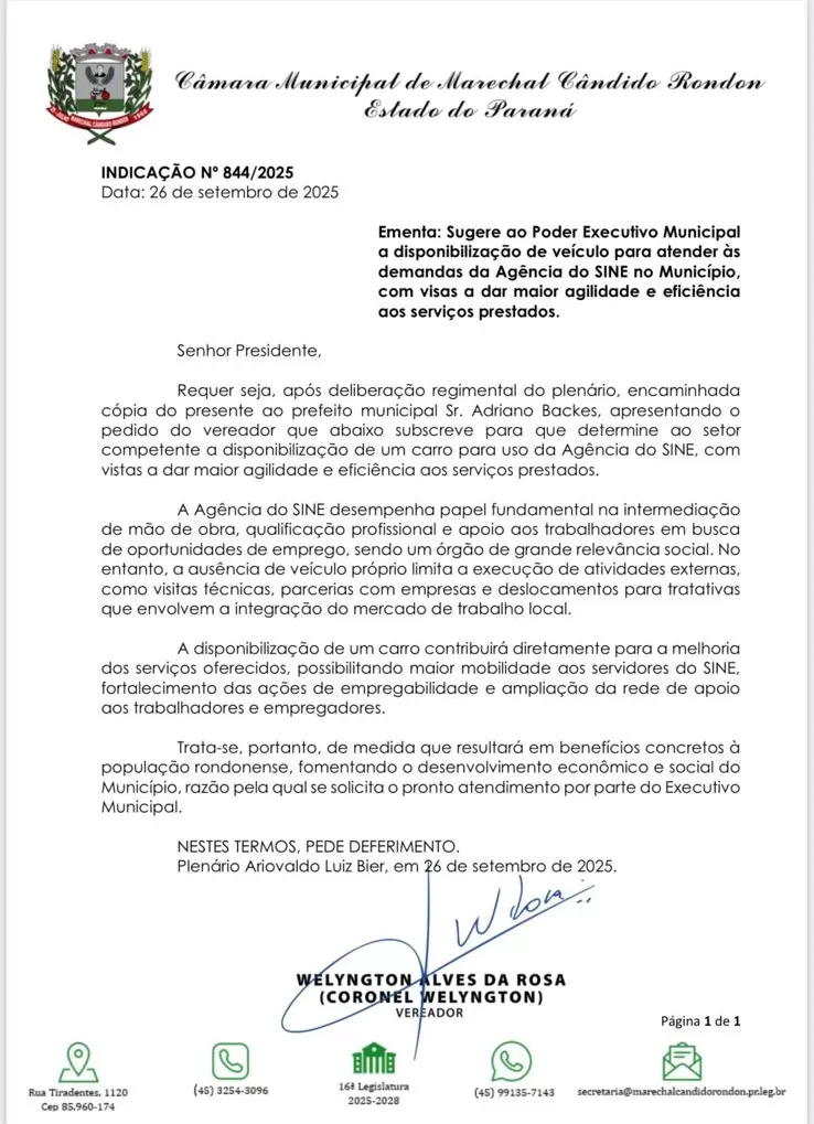 Marechal Cândido Rondon foi um dos municípios contemplados com um veículo Polo. O município esteve representado no evento de entrega pelo vice-prefeito Vanderlei Sauer e pelo diretor do Sine local, Sergio Marcucci, que falou em nome de todos os gerentes durante o evento.