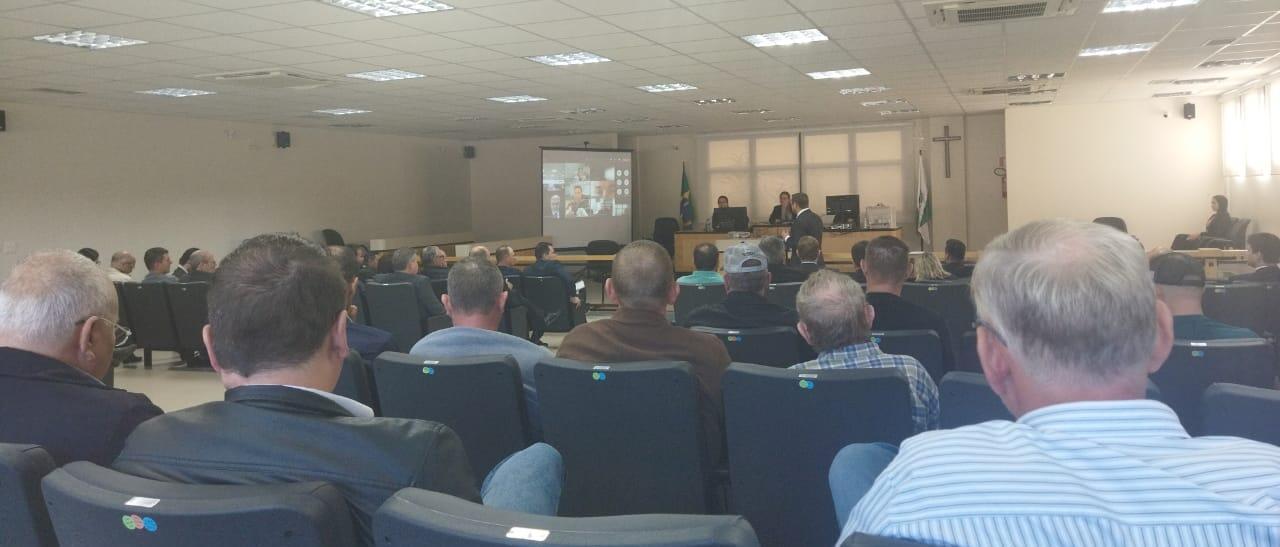 A audiência está sendo transmitida pelo Tribunal de Justiça do Paraná e acompanhada por credores e/ou representantes nas dependências do Fórum de Marechal Cândido Rondon.