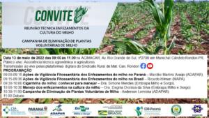Diante do problema, nesta sexta-feira (13), às 09 horas, na sede da Associação Comercial e Empresarial de Marechal Cândido Rondon (Acimacar), será realizada uma reunião técnica sobre os enfezamentos do milho.