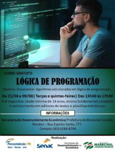 A prefeitura de Marechal Cândido Rondon, através da Secretaria de Desenvolvimento Econômico, e o Senac são parceiros de mais um importante curso. Trata-se da capacitação em lógica de programação, que objetiva repassar informações sobre como desenvolver algoritmos estruturados.
