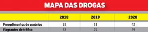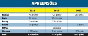 Além disso, a delegacia recebeu 780 gramas de cocaína e sete gramas de haxixe apreendidos no ano passado. “Causamos um prejuízo aproximado de R$ 200 mil ao crime organizado”, mensura Santos.