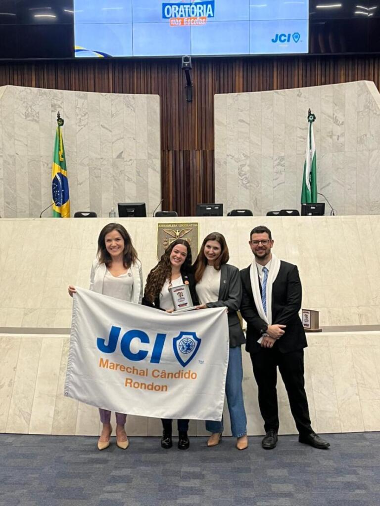 Os alunos Carlos Eduardo Pivotto Klein e Isabela Laís Gehlen representaram a JCI Marechal Cândido Rondon e o município na competição. Os dois tiveram a oportunidade e o grande privilégio de apresentarem seus discursos no Plenário da Assembleia Legislativa do Paraná.