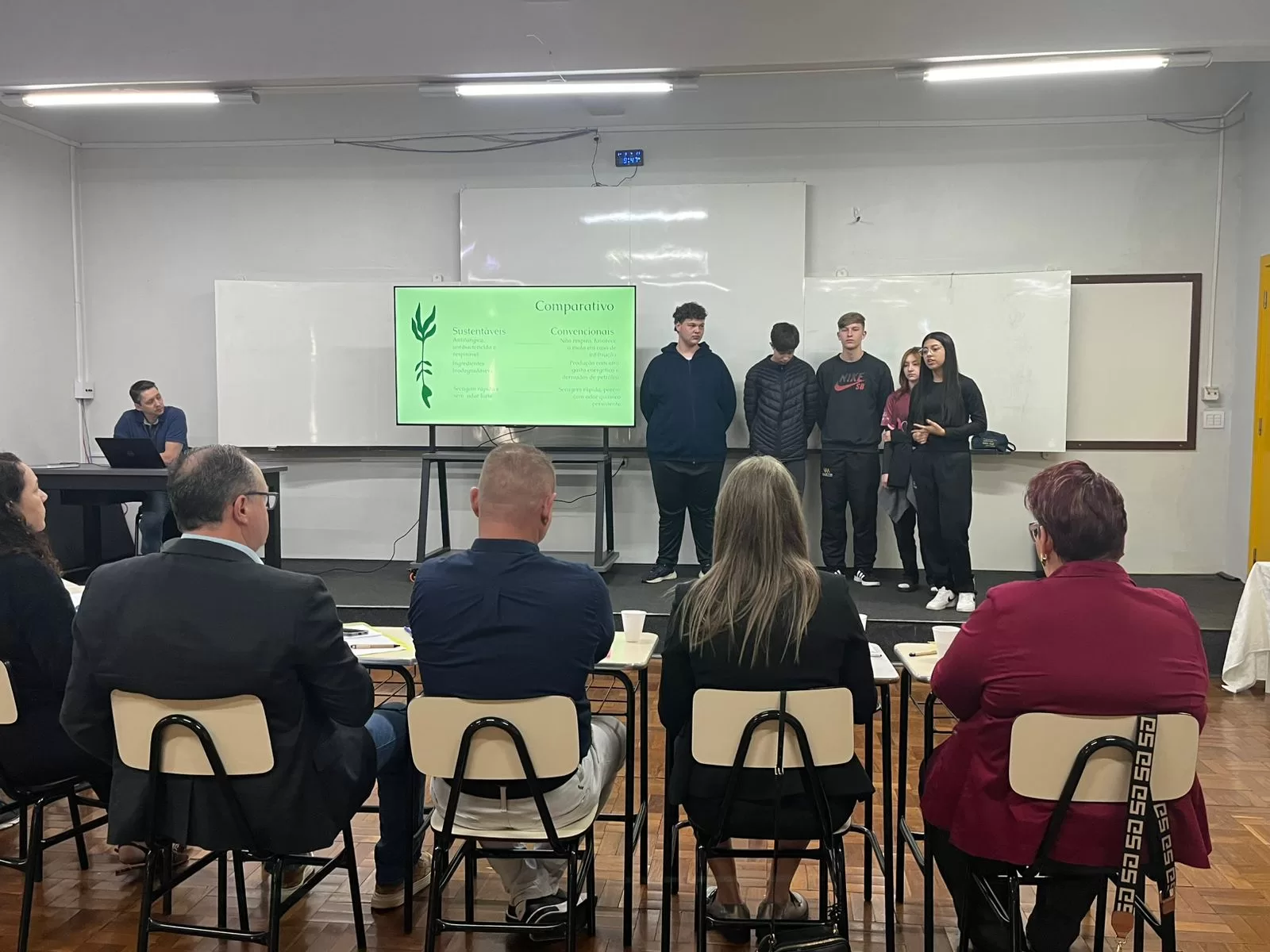 Nesta quinta-feira (14), o Colégio Evangélico Martin Luther deu início às apresentações da Olimpíada de Empreendedorismo, reunindo criatividade, inovação e espírito de liderança dos alunos do Ensino Médio. Em um formato inspirado no programa de televisão Shark Tank, os estudantes apresentaram suas ideias de startups para uma banca de avaliadores formada por especialistas e empresários de diferentes segmentos: Cristianne Kempp, Ivan Naleiro dos Reis Machado, Jean Carlos Berwaldt, Luciara Ciane Port Thomé, Paulo Adriano Grenzel e Roberto Afonso Thomé (Beto).
