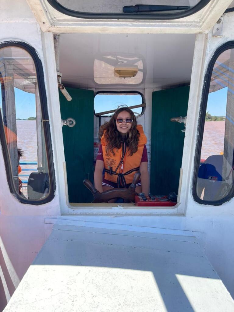 Durante o passeio de barco, realizado no Rio Paraná, que é o 3º maior rio do Brasil e 8º maior rio do mundo, os alunos observaram as margens do Parque Nacional de Ilha Grande. Os alunos também conheceram um pouco mais sobre a área de alagamento, sobre as ilhas e as formações de bancos de areia, além de observar uma área de proteção ambiental permanente, que é a Lagoa da Saraiva.