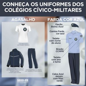 Conheça os novos uniformes que os alunos estão recebendo nos colégios cívico-militares do Paraná: