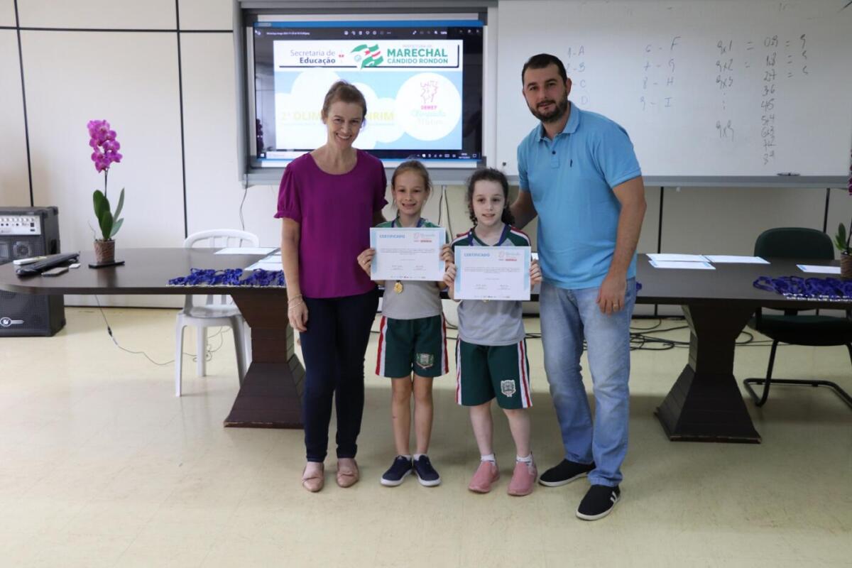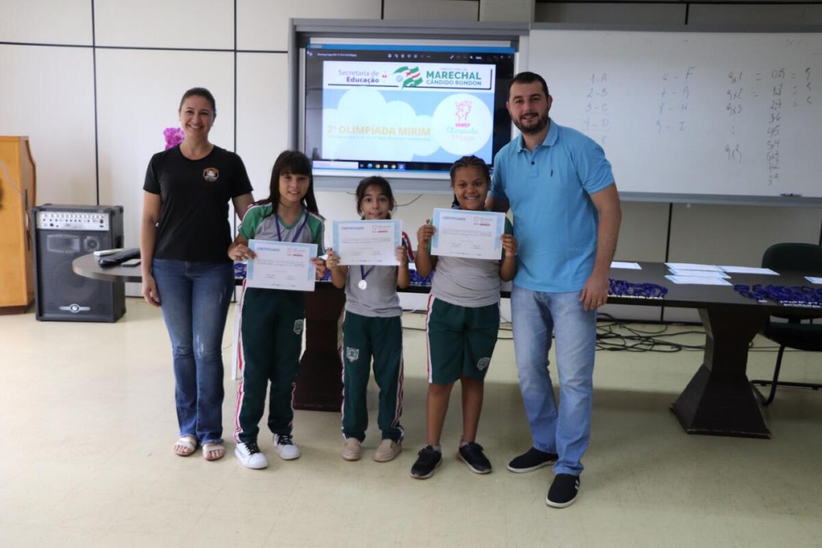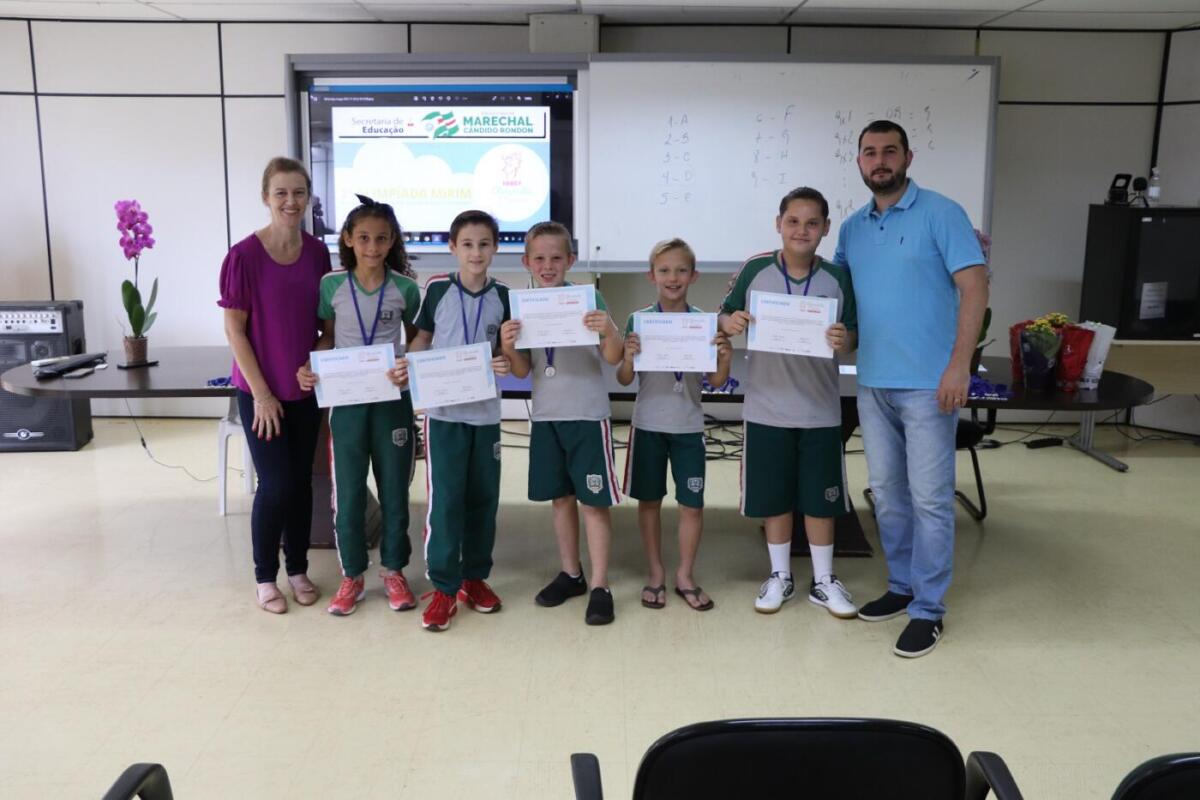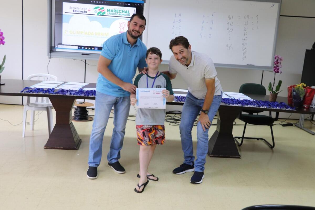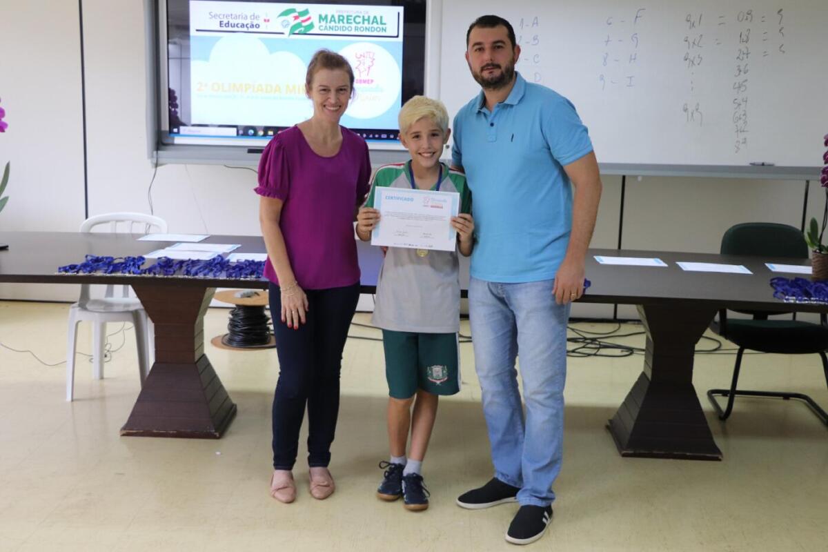 Neste ano, 2.534 estudantes da rede municipal participaram da 1ª fase da OBMEP, nos níveis 1 e 2. Foram premiados nesta segunda-feira, os alunos das escolas municipais Bento Munhoz da Rocha Neto, Érico Veríssimo e 25 de Março, que conquistaram medalhas de ouro, prata e bronze.