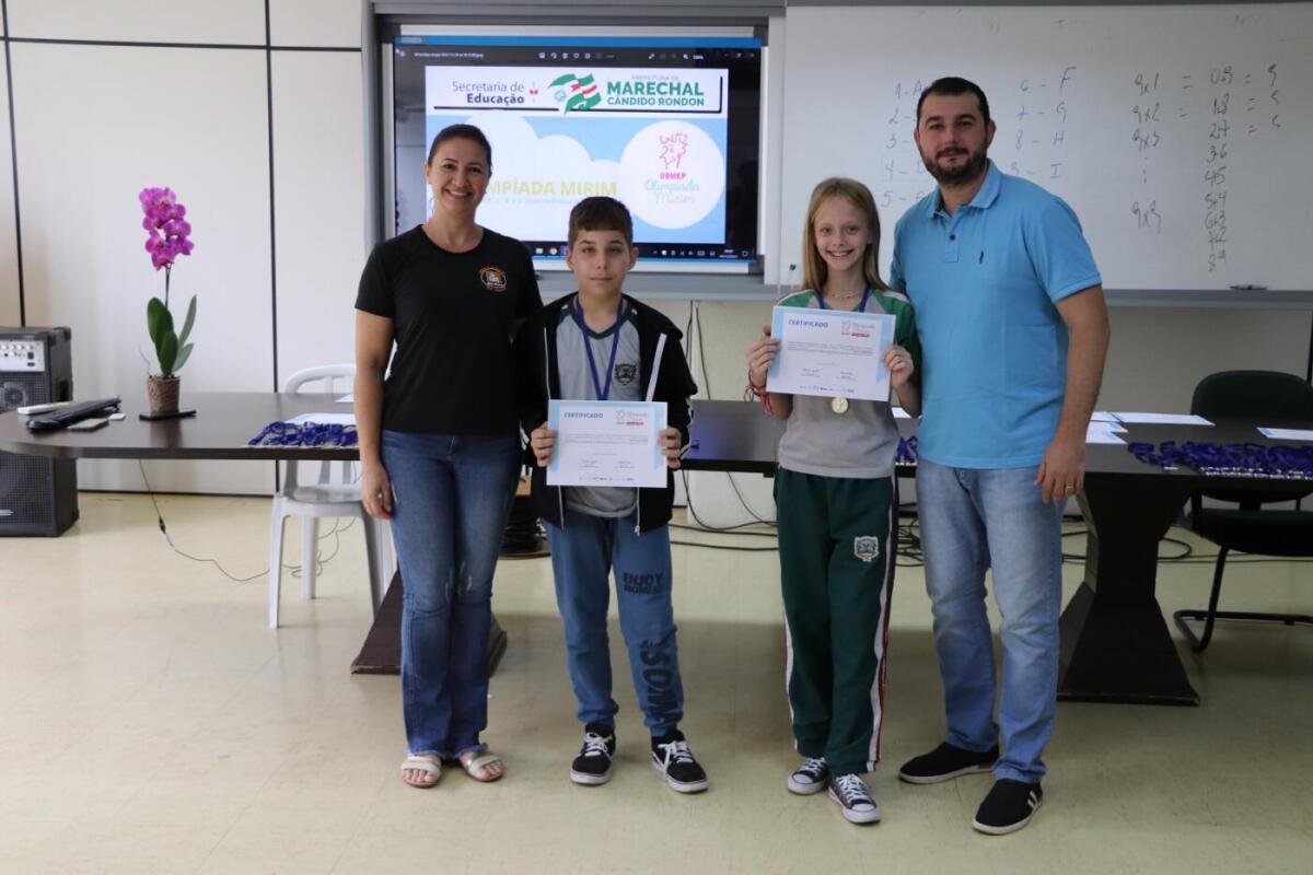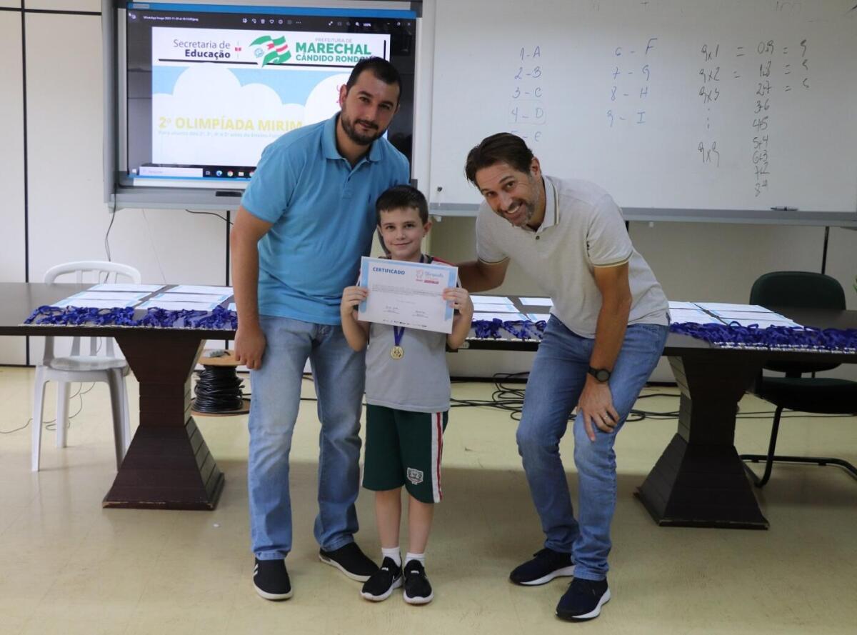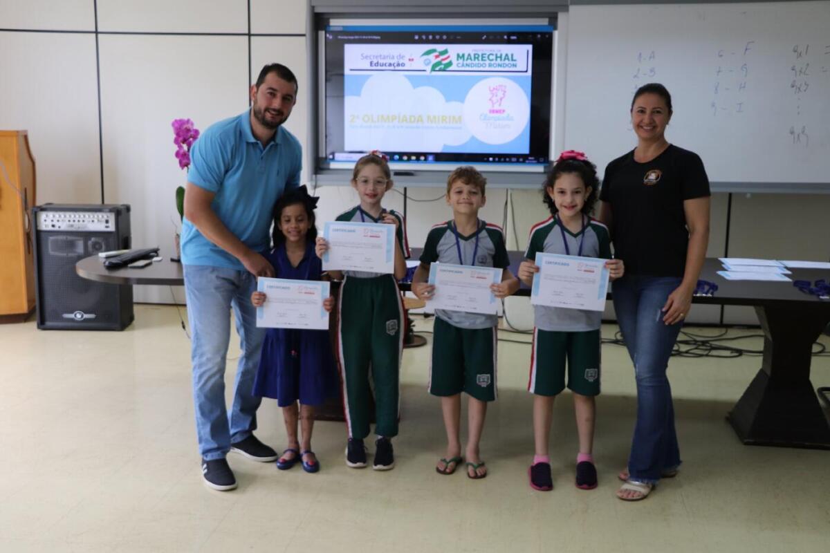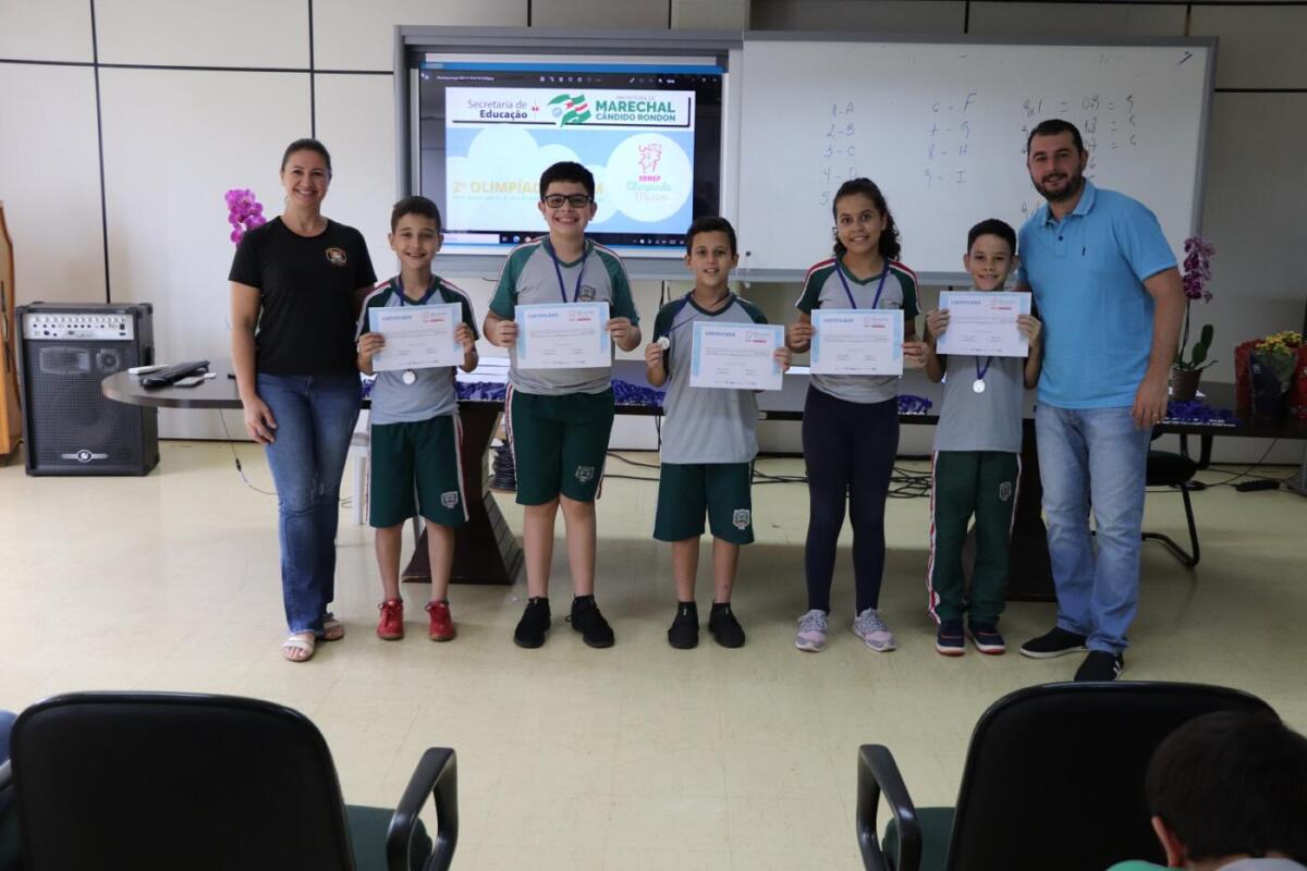 Neste ano, 2.534 estudantes da rede municipal participaram da 1ª fase da OBMEP, nos níveis 1 e 2. Foram premiados nesta segunda-feira, os alunos das escolas municipais Bento Munhoz da Rocha Neto, Érico Veríssimo e 25 de Março, que conquistaram medalhas de ouro, prata e bronze.