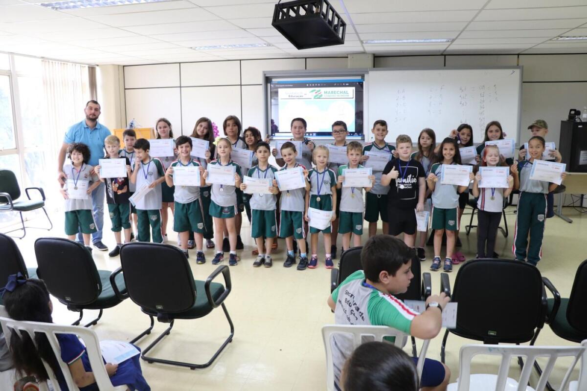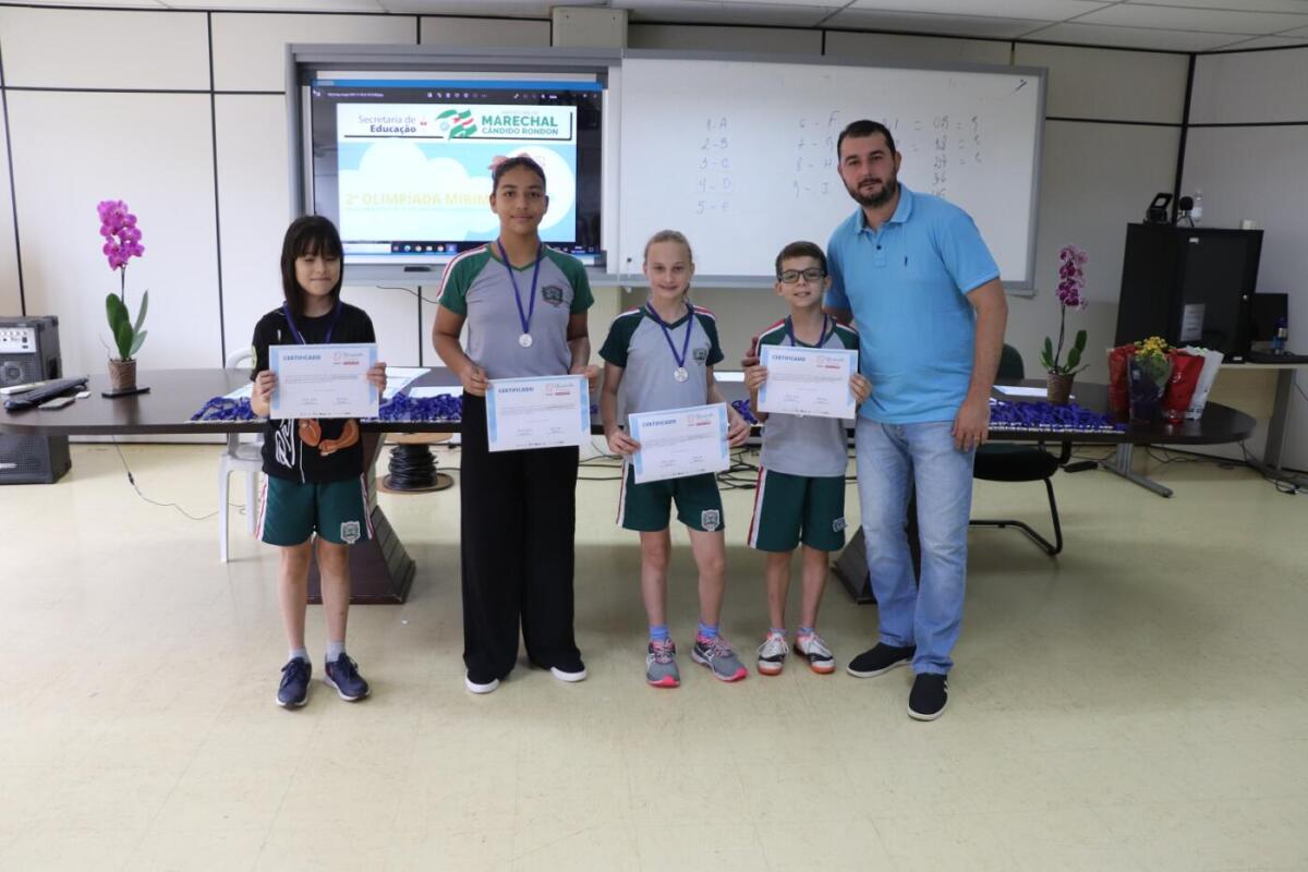 Durante ato realizado na manhã desta segunda-feira (4), no auditório da prefeitura de Marechal Cândido Rondon, foi realizada a entrega das medalhas aos alunos premiados na Olimpíada Brasileira de Matemática das Escolas Públicas (OBMEP) Mirim.