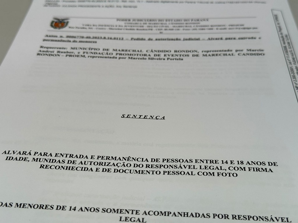 O juiz de direito da Vara da Infância e da Juventude, Seção Cível, de Marechal Cândido Rondon, Renato Cigerza, expediu sentença em que regulamentou a participação de menores de 18 anos na Oktoberfest 2023, que acontecerá nos dias 27 e 28 de outubro, no parque de exposições rondonense.