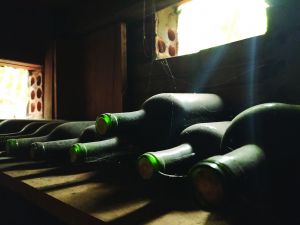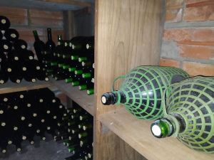 236 garrafas e, à direta, garrafões mais antigos de vinho branco. Adega de Wagner é o seu refúgio: pouca luz e bom vinho (Foto: O Presente)