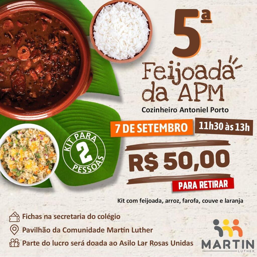 Acontece nesta quarta-feira, feriado de 7 de setembro, a 5ª Feijoada da APM, promovida pela Associação de Pais e Mestres (APM) do Colégio Evangélico Martin Luther, de Marechal Cândido Rondon.