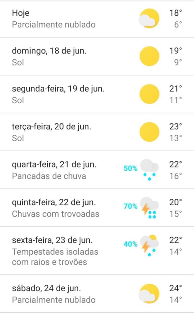 Veja a previsão para Marechal nos próximos dias, segundo o Weather: