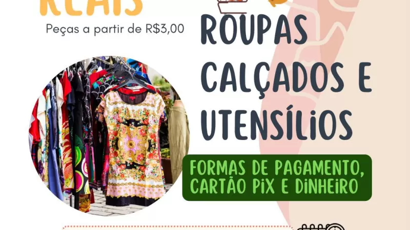 O bazar contará com a venda de roupas, calçados e utensílios, com valores a partir de apenas R$ 3,00. Além disso, os consumidores poderão realizar pagamentos de forma prática, utilizando cartão, PIX ou dinheiro.