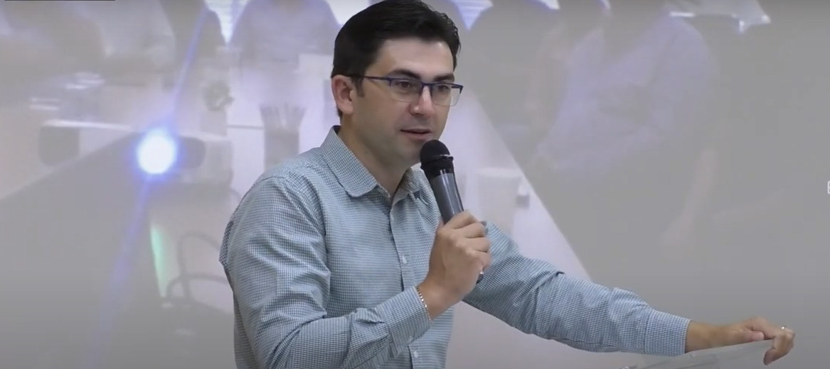 O diretor de Operações da Sicredi Aliança PR/SP, Roberto Bernardi, iniciou o evento conduzindo um momento de reflexão/oração, apresentando um vídeo em homenagem a Adolfo Freitag em nome dos colaboradores.