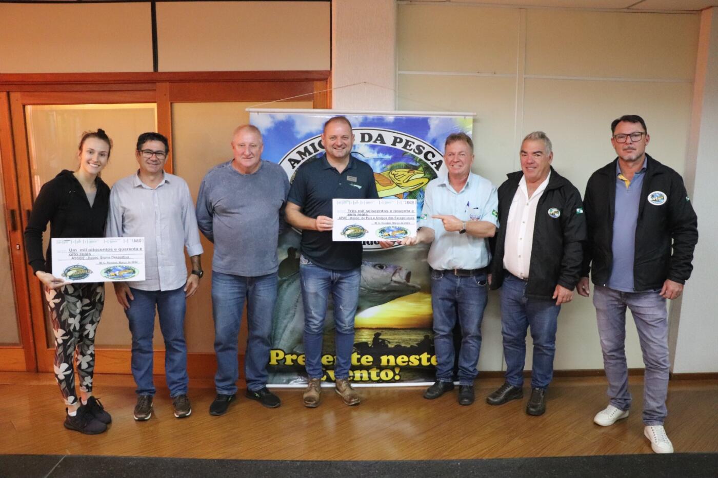 Por isso, a Associação de Pais e Amigos dos Excepcionais (Apae), no ato representada pela presidente Roberto Thomé, recebeu R$ 3.596 e a Associação Sigma Desportiva (Asside), representada por Bruna Schmitt, recebeu R$ 1.848. O repasse simbólico dos cheques foi realizado pelo presidente do Clube Amigos da Pesca, Sidenei Paulo Steinbach, pelo vice-prefeito Ilário Hofstaetter e pelo presidente da Proem, Claudio Kohler, o Claudinho. Também estiveram presentes demais integrantes do Clube Amigos da Pesca.