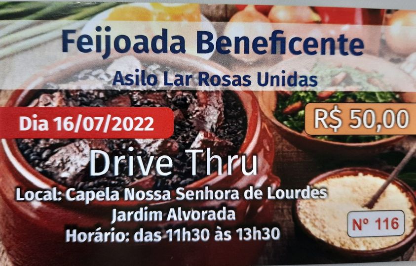 A Associação Lar Rosas Unidas, de Marechal Cândido Rondon, promove no próximo dia 16 uma feijoada beneficente no sistema drive thru.