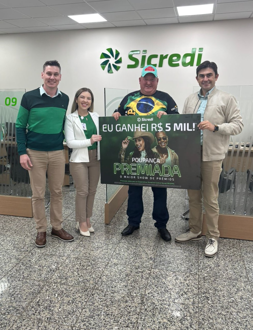 No Sicredi, ao investir em poupança você participa de diversos sorteios. Nesta quinta-feira (29) a Sicredi Aliança PR/SP entregou mais um prêmio de R$5 mil. Maikel James Hoffmann, associado da agência Copagril/Marechal Cândido Rondon foi o ganhador. A entrega foi feita na presença do Presidente da Sicredi Aliança PR/SP, Fernando Barros Fenner.