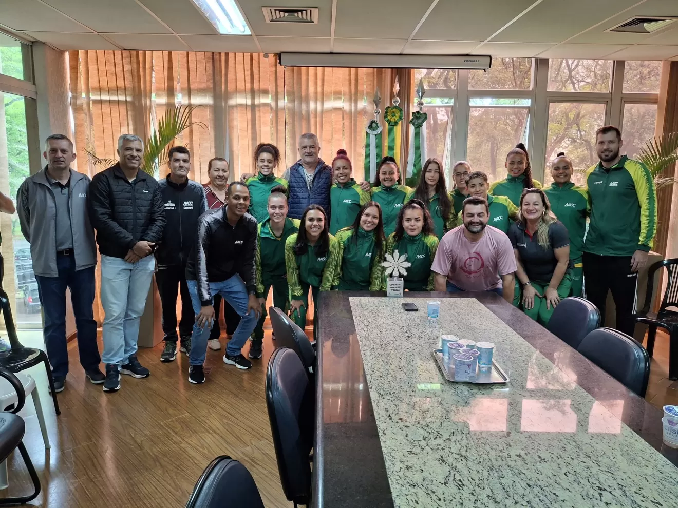 Durante a recepção, o prefeito Adriano Backes destacou o esporte como um poderoso aliado na formação dos jovens, promovendo saúde, disciplina, trabalho em equipe e valores que transformam vidas dentro e fora das quadras.