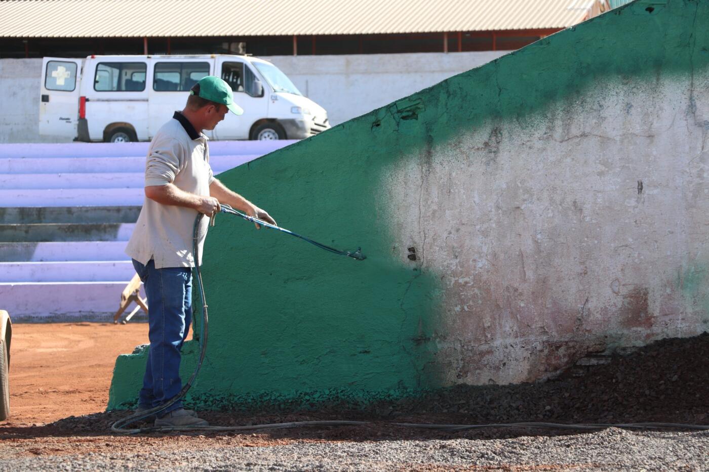 Nesta quarta-feira (13), a prefeitura promoveu melhorias no asfalto do parque de exposições. O trabalho continua para que tudo esteja pronto para a próxima quinta-feira (21), data de abertura da festa do município.
