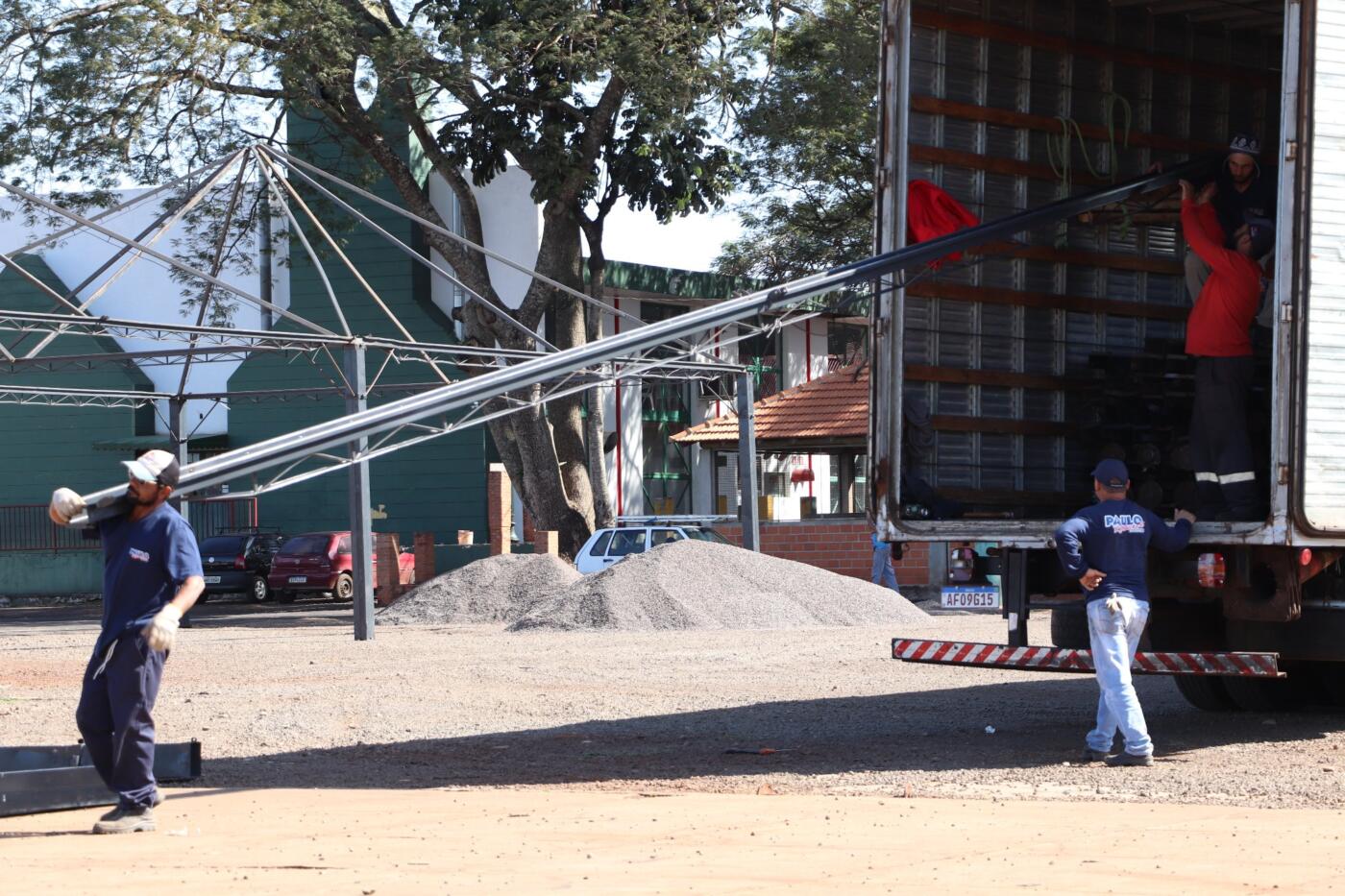 É intensa a movimentação de maquinários, veículos, caminhões e trabalhadores no parque de exposições de Marechal Cândido Rondon, em virtude dos preparativos para a Expo Rondon 2022. O evento acontecerá de 21 a 25 de julho.