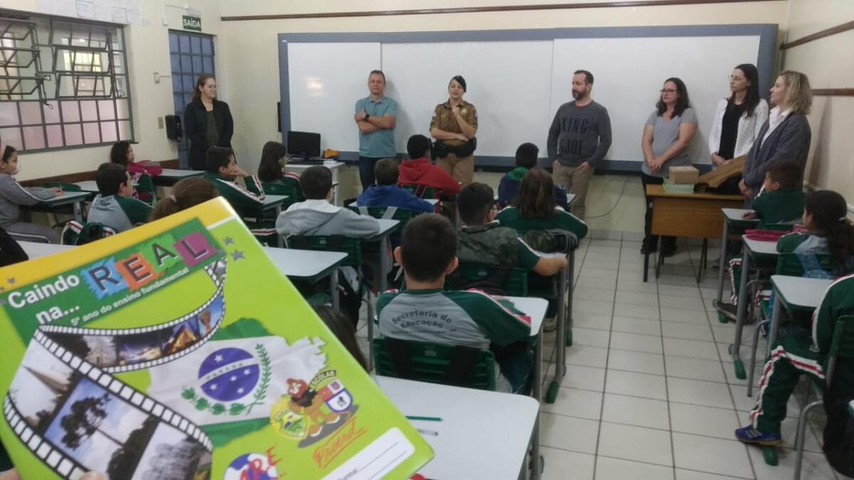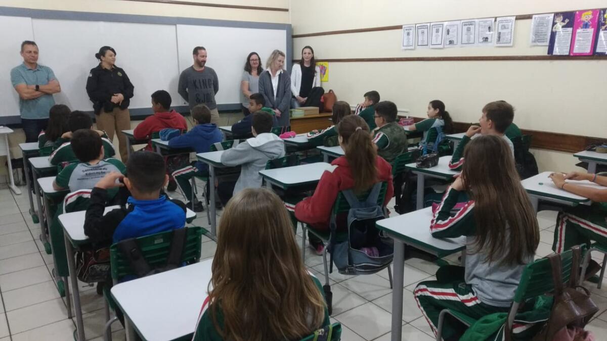 Estiveram presentes Alaercio Pinati, representando a Secretaria Municipal de Educação; vereador Soldado Sauer; diretora da Escola 25 de Março, Katiane Hofstaetter, e equipe; e a policial militar Joselaine Oliveira, instrutora do Proerd.