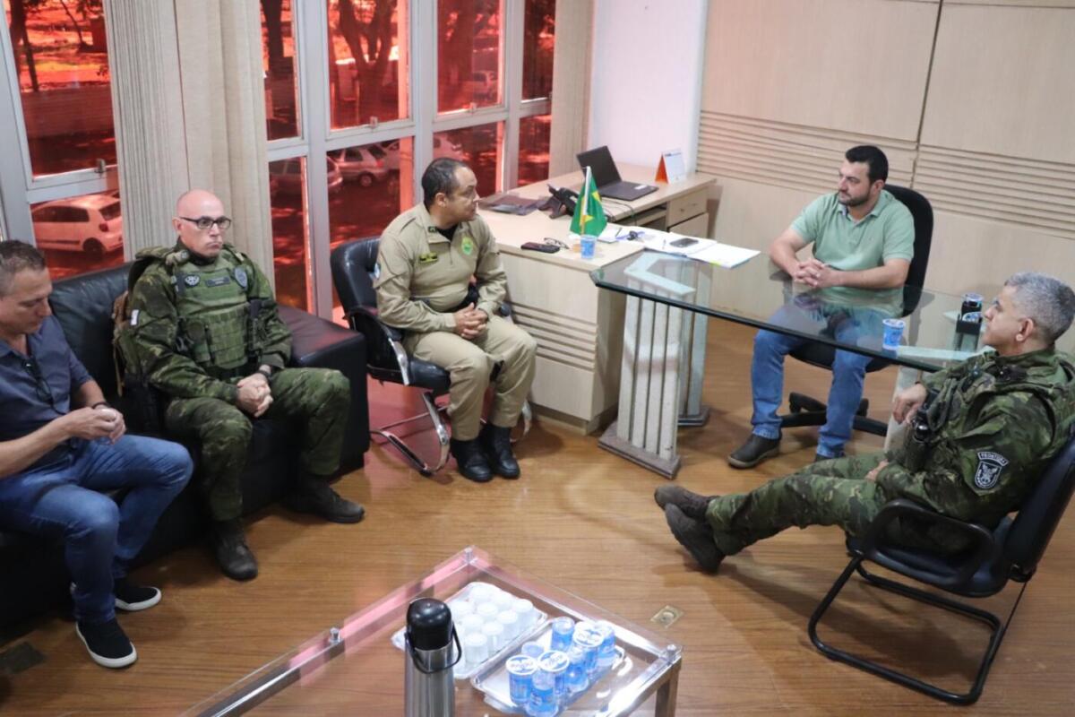 O prefeito Adriano Backes e o vice-prefeito Vanderlei Sauer receberam, na manhã desta quinta-feira (9), em seu gabinete, representantes das forças policiais. Entre os presentes estavam o tenente-coronel Valmir de Souza, que está respondendo pelo comando do 5º Comando Regional de Polícia Militar de Cascavel, major Divonsir de Oliveira Santos, comandante do Batalhão de Polícia de Fronteira (BPFRON), e o major Éldison Martins do Prado, subcomandante do BPFRON.