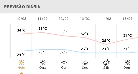 A terça-feira (10) será de calor em Marechal Cândido Rondon com temperatura máxima de 34°C. A previsão para a cidade é de tempo estável, ventos de até 40 km/h e umidade do ar entre 39% e 74%.