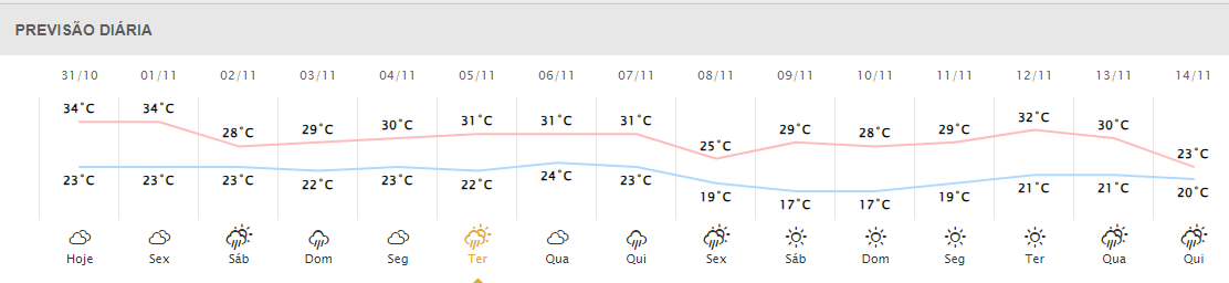Em Marechal Cândido Rondon, a temperatura máxima prevista para esta quinta-feira é de 34ºC. Veja abaixo como ficam os próximos dias. ???