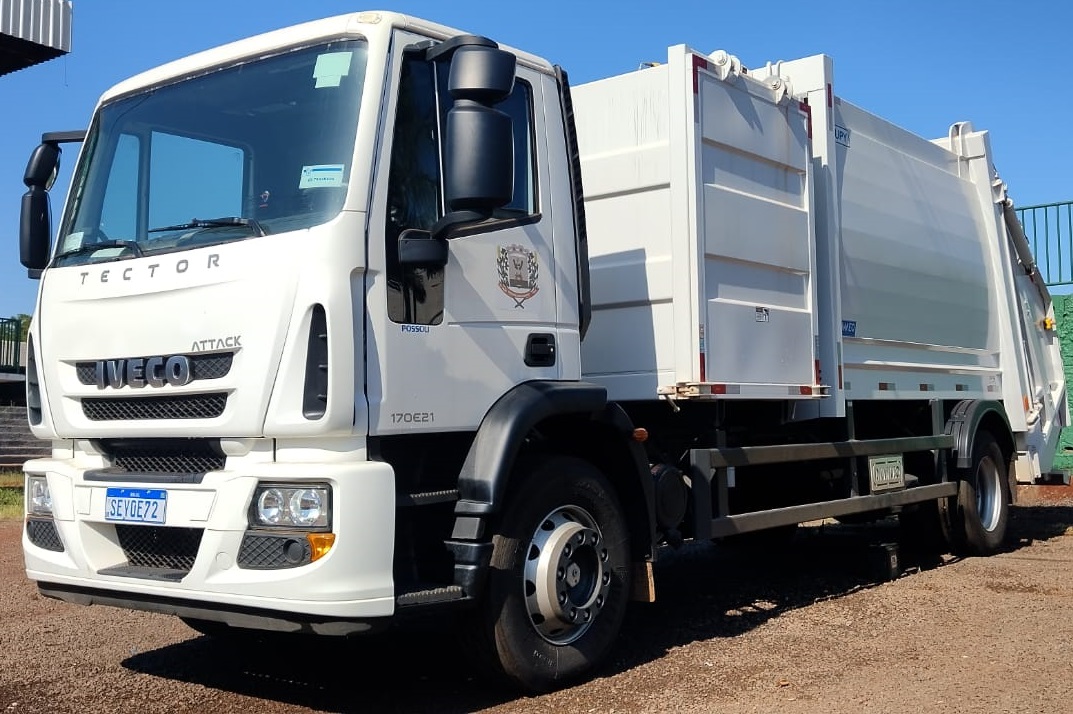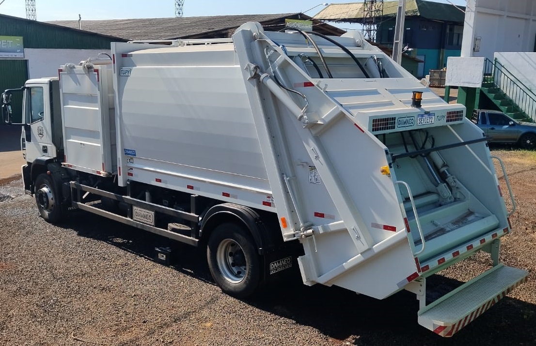 Trata-se de um caminhão TECTOR 170E25, 4X2, bicoletor (com dois compartimentos), que pode ser utilizado concomitantemente para recolha de resíduo orgânico para compostagem e reciclados.