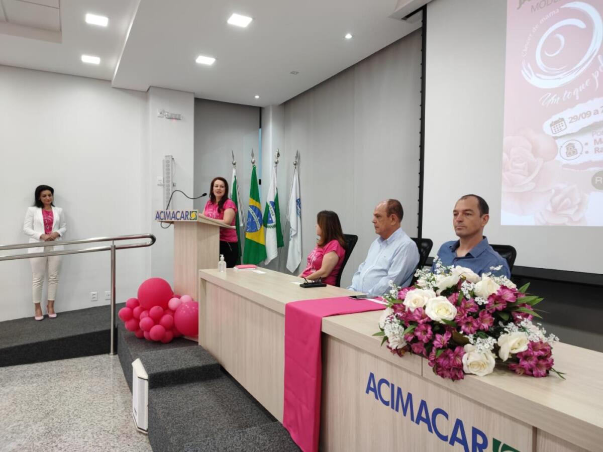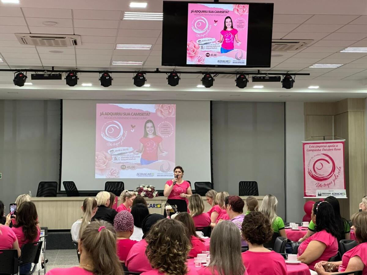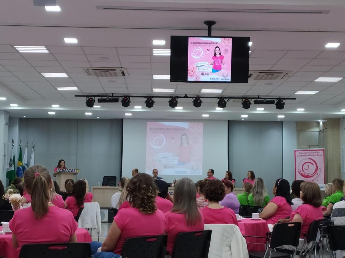 Comercial e Empresarial de Marechal Cândido Rondon (Acimacar), lançou, nesta sexta-feira (29), a campanha “Outubro Rosa”. A solenidade, promovida no auditório da Acimacar, contou com a participação de empresárias, lideranças, autoridades e convidados.