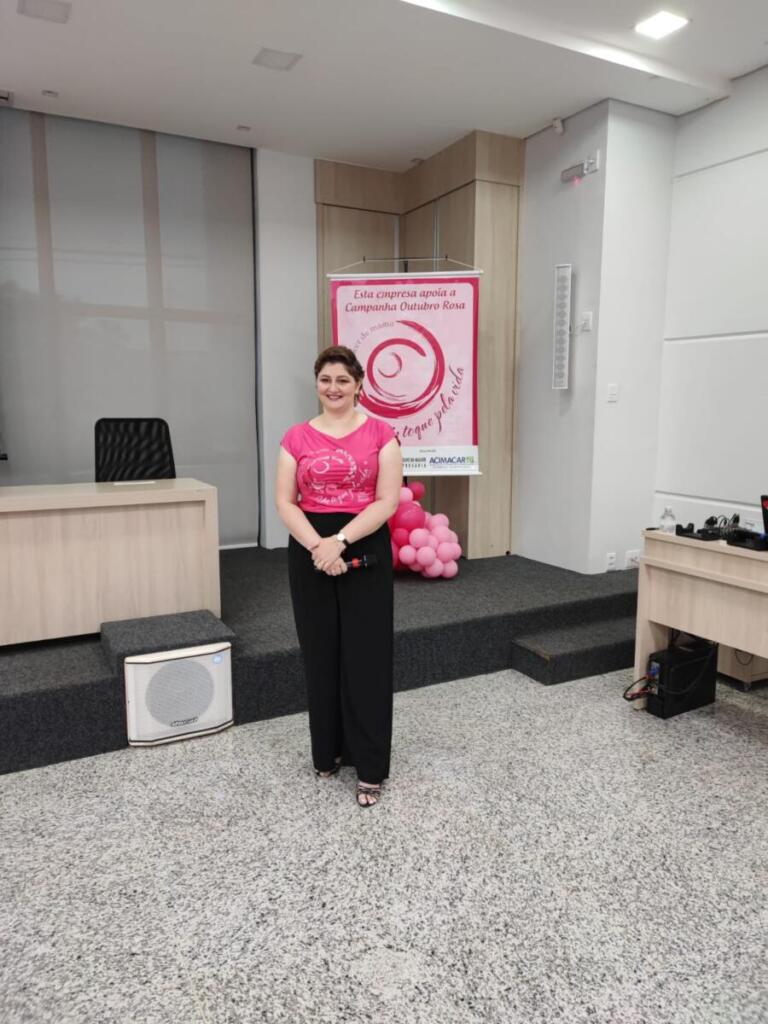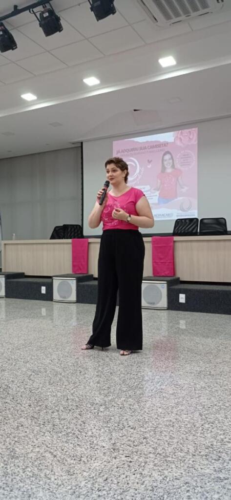 Cláudia Bayer Lima, palestrante, mentora de líderes e consultora de RH, 36 anos, moradora de Marechal Rondon, narrou aos presentes a sua história com o câncer. Ela teve carcinoma inflamatório da mama, um tipo raro de câncer de mama invasivo, tratou por longos meses e hoje está curada da doença. “Sou um milagre de Deus”, disse ela à plateia, emociada, emocionando, também, os presentes. (Abaixo vídeo com o relato de Cláudia, compartilhado hoje durante o evento de lançamento da campanha “Outubro Rosa”).