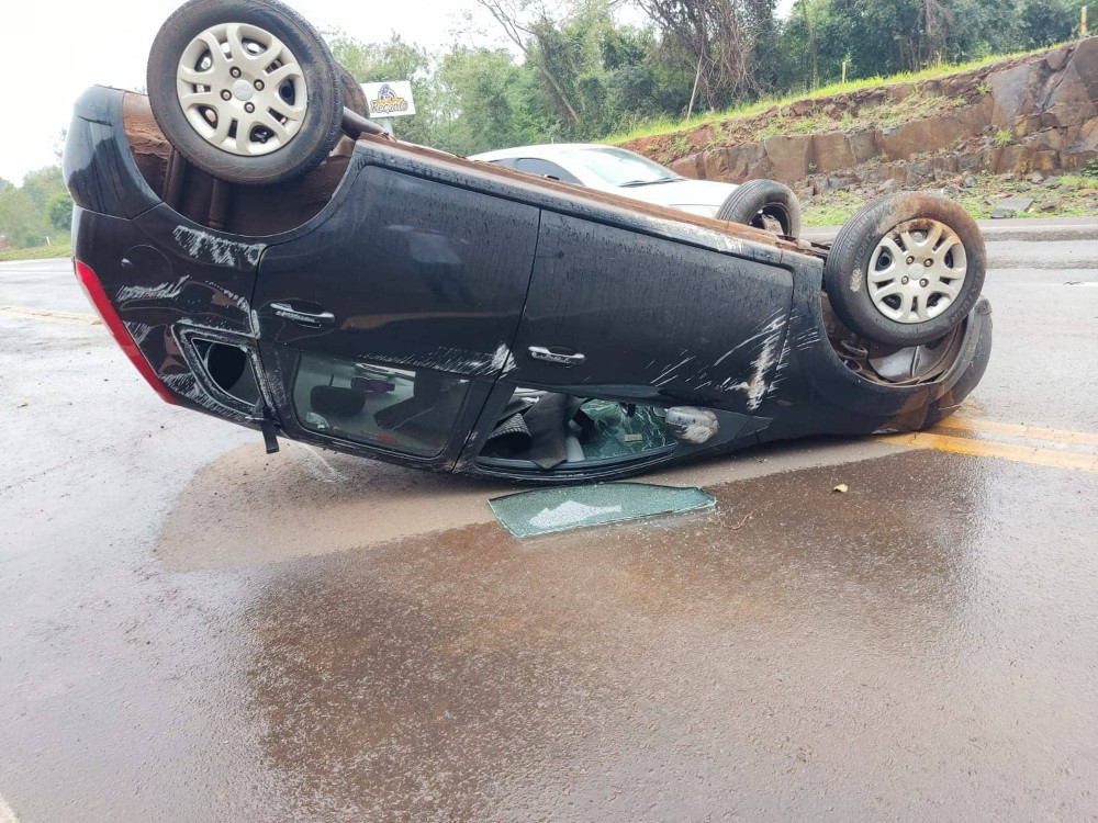 Um capotamento de veículo foi registrado na tarde desta terça-feira (13) na rodovia que liga a sede de Marechal Cândido Rondon ao distrito de Curvado, na curva próximo ao Batalhão de Polícia de Fronteira (BPFron), local de várias ocorrências do gênero.