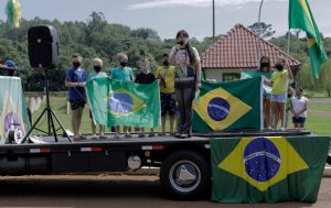 No final, os participantes pararam no Parque de Lazer Rodolfo Rieger (Lago Municipal), onde cantaram o hino nacional, rezaram o Pai Nosso e houve pronunciamento de Tânia Maion, uma das apoiadoras mais expressivas do presidente Jair Bolsonaro em Marechal Rondon e região.