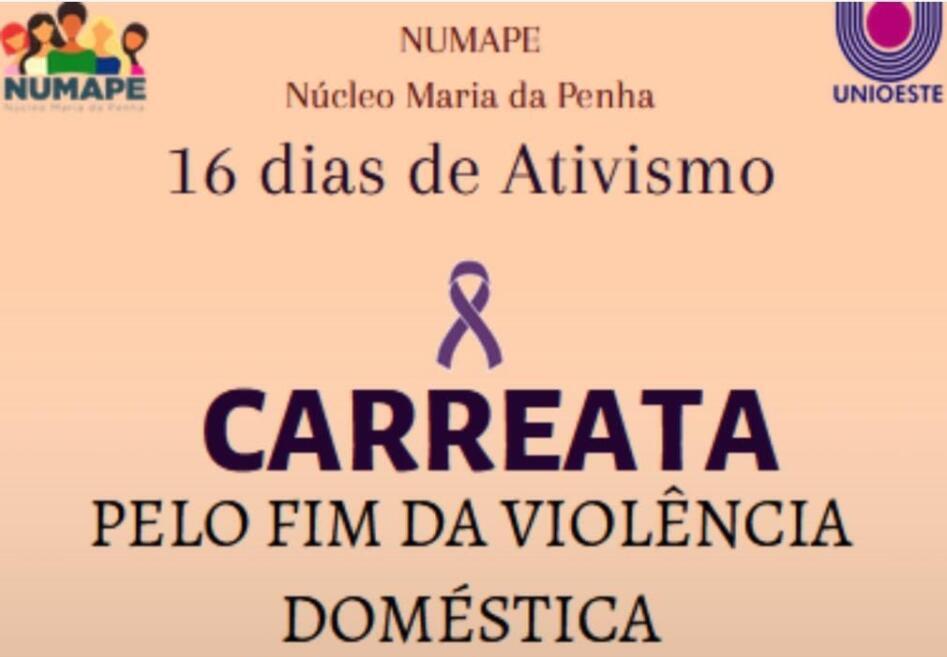 O Núcleo Maria da Penha (Numape) de Marechal Cândido Rondon promove neste sábado (26) uma carreata pelo fim da violência doméstica.
