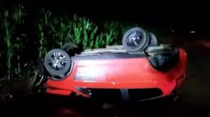 A Polícia Militar e o Corpo de Bombeiros foram acionados por volta das 21h40 de sexta-feira (08) para atenderem a um capotamento de veículo na rodovia municipal que liga Marechal Cândido Rondon a Margarida, próximo a Coroados.
