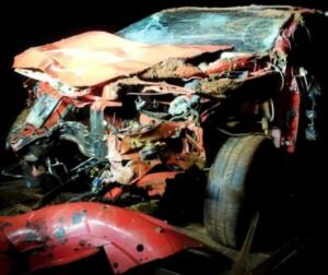 O capotamento envolveu um Fiat Palio Sporting de cor vermelha. O veículo ficou destruído no acidente, tendo o motor arrancado.