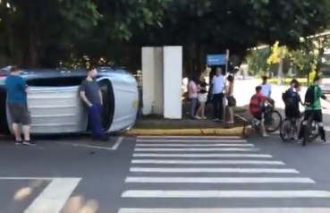 Com o impacto lateral, a Tucson tombou. O motorista não ficou ferido.
