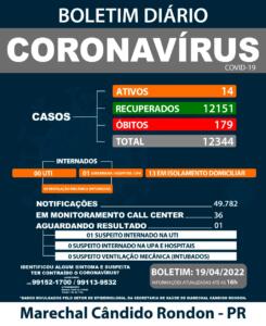 O Setor de Epidemiologia da Secretaria de Saúde atualizou, às 16 horas desta terça-feira (19), os dados relativos à Covid-19 em Marechal Cândido Rondon.