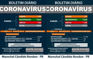 Trinta e cinco novos casos de Covid-19 foram registrados em Marechal Cândido Rondon nas últimas 24 horas. Segundo o Setor de Epidemiologia da Secretaria de Saúde, o município chegou a 7.932 casos positivos da doença nesta sexta-feira (14), sendo que 7.644 rondonenses se recuperaram e 158 foram a óbito por complicações do vírus Sars-CoV-2.