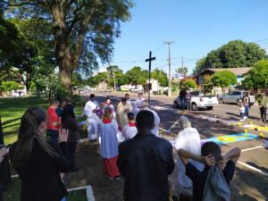 Uma missa, seguida de procissão, marcou a solenidade de Corpus Christi na Paróquia Sagrado Coração de Jesus – matriz da Igreja Católica em Marechal Cândido Rondon, na manhã desta quinta-feira (16).