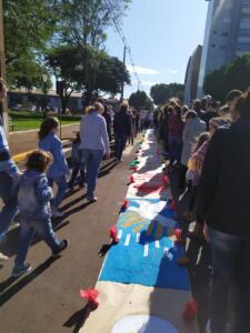A procissão contou com tapetes nas ruas ao redor da praça para a passagem do Santíssimo Sacramento e altares para meditação sobre a Eucaristia.