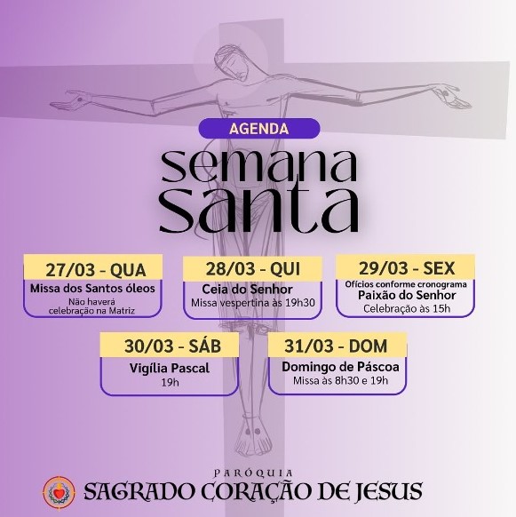 São alguns dos eventos que marcarão a Semana Santa, conforme destaca o padre Sergio Rodrigues, da Paróquia Sagrado Coração de Jesus.