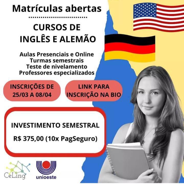 O Centro de Línguas (CeLing) da Universidade Estadual do Oeste do Paraná (Unioeste), campus de Marechal Cândido Rondon, está com matrículas abertas para os cursos de inglês e alemão.