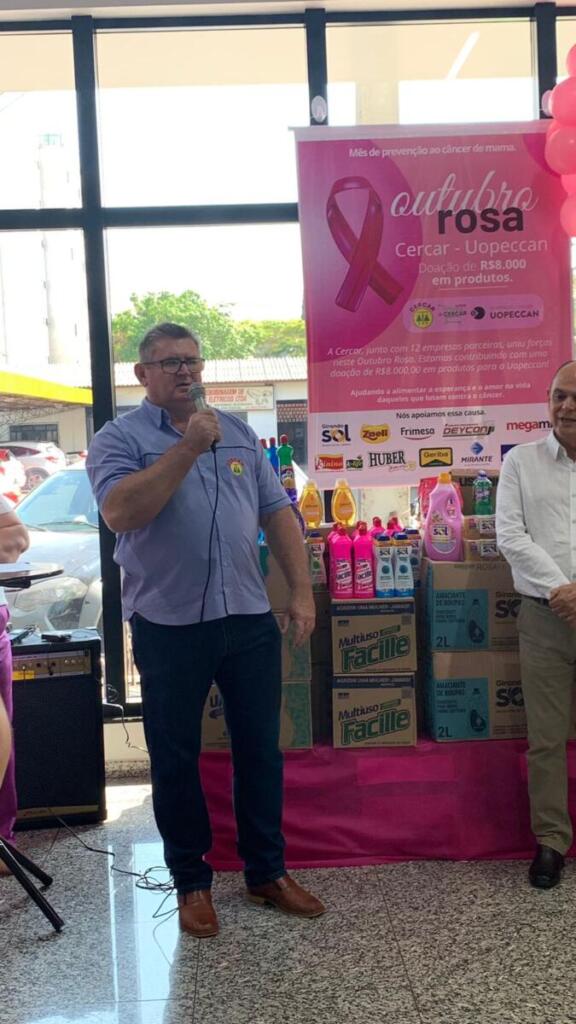 O diretor de relações públicas da Uopeccan, Wilson Riedlinger, agradeceu a doação. “Tudo isso que os senhores doaram, obrigado senhores fornecedores, é para a manutenção da casa de apoio. A Uopeccan surgiu com a ideia de uma casa e de repente está casa evoluiu e hoje é o 4º maior hospital do Brasil. Por questão de localização, estamos em Cascavel, mas ele não é de Cascavel. O que vocês estão doando é para a manutenção da casa de apoio, anexa ao hospital e que atende em média de 80 a 100 pessoas de segunda a sexta-feira. São pessoas que estão em tratamento de quimioterapia, radioterapia ou acompanhantes que não têm onde ficar e lá eles ficam; têm seis refeições por dia e ninguém paga nada. Então, essa ação que você está fazendo é bíblica, é uma ação que você está se doando para alguém que não conhece, é o que nós fazemos todos os dias”, frisou Wilson.