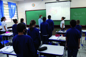 O diretor-militar do Frentino destaca que faz intervenções na disciplina entremeio às demais funções exercidas. “A professora me cede uma parte da aula para que eu faça um treinamento com os alunos sobre a base militar”, explica.