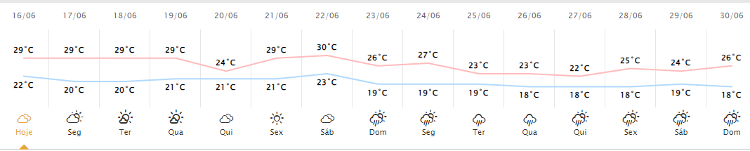 Neste semana, os dias devem ser de muitas nuvens no céu, com temperaturas oscilando entre 20ºC e 30ºC no município rondonense.